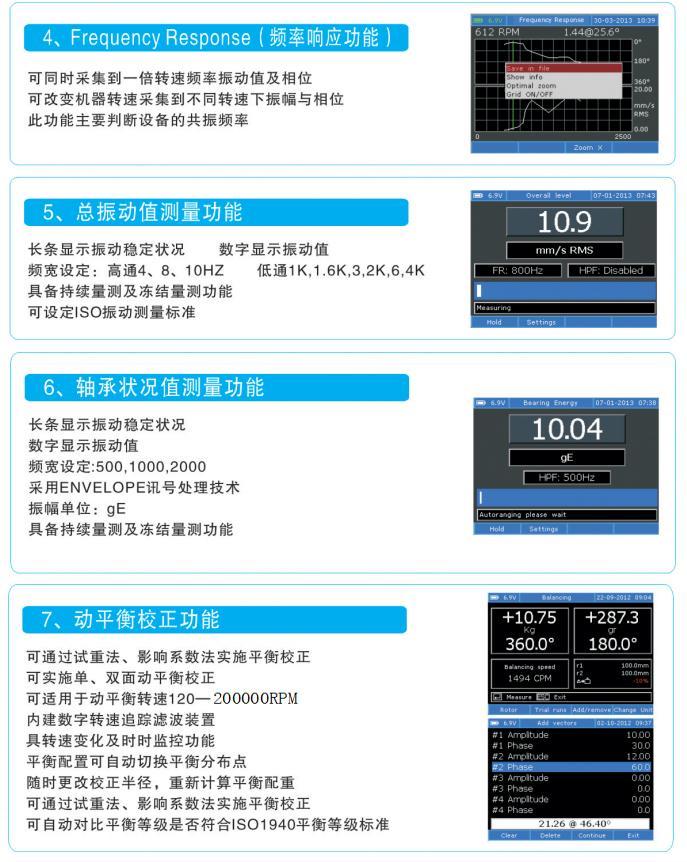 支持振動分析和現(xiàn)場動平衡功能,滿足多種設(shè)備維護(hù)需求。