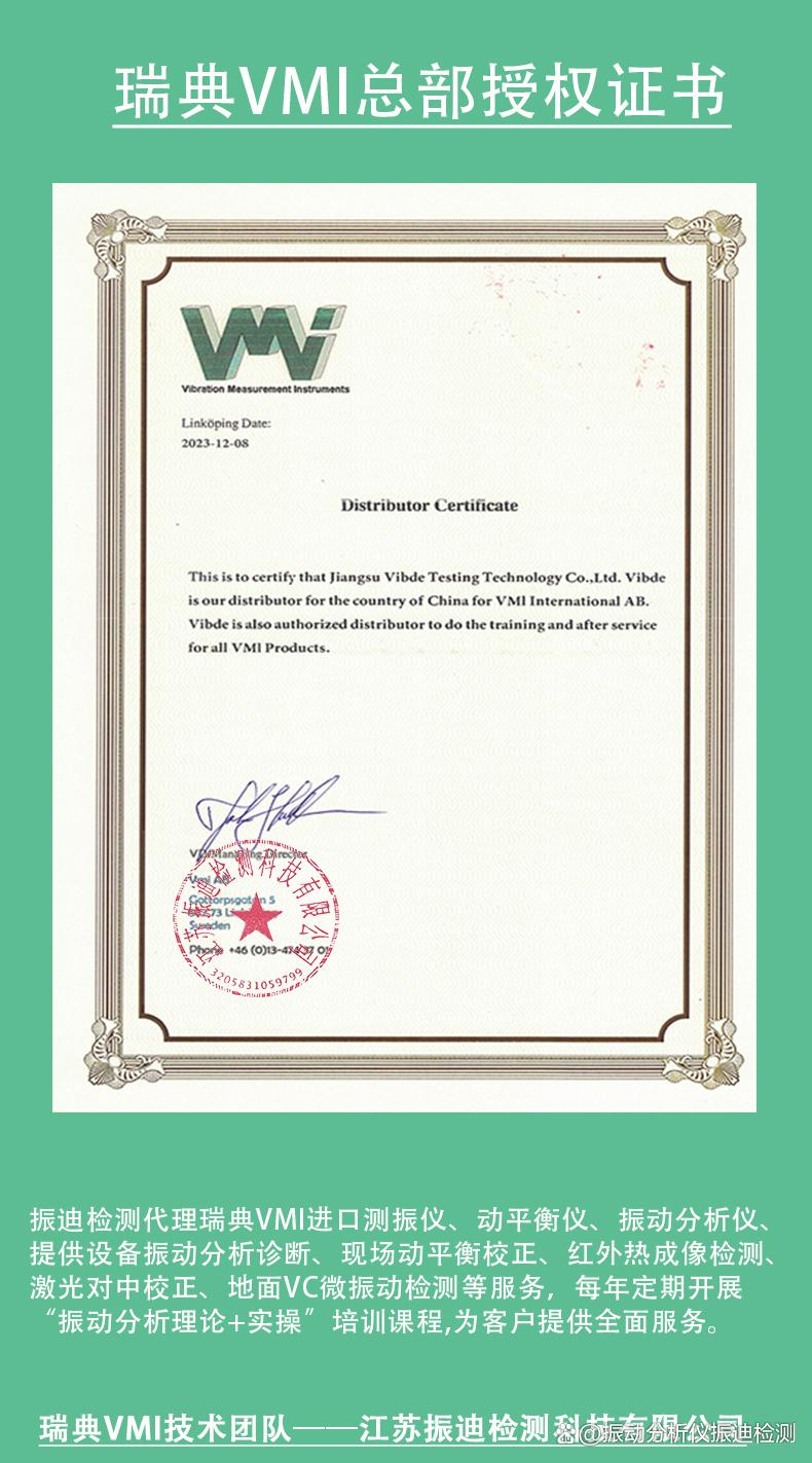 江蘇振迪檢測公司是瑞典VMI總部在中國設立的技術團隊,由擁有國際注冊振動分析師證書及經驗豐富的工程師們組成,代理的瑞典VMI產品在國內暢銷,無論您是需要購買儀器還是需要服務,振迪檢測都能提供一條龍一站式解決方案及培訓體系。